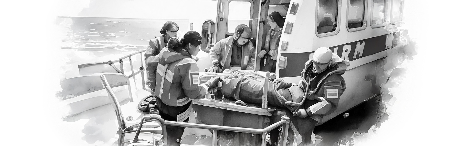 Vier mannen: Hessel Kooiker, Sip de Jong, Henk Mosterman en Dirk van Noordt, operationeel inspecteur bij de KNRM, zaten achter hun eerste pilsje in de pub. Op dat moment stormde Hamish MacDonald binnen. “I need some crewmembers,” zei hij dringend. MacDonald was hun instructeur en directeur van het Survival Centre, dat de training verzorgde. Zo raakten de vier mannen betrokken bij een internationale real life rescue.