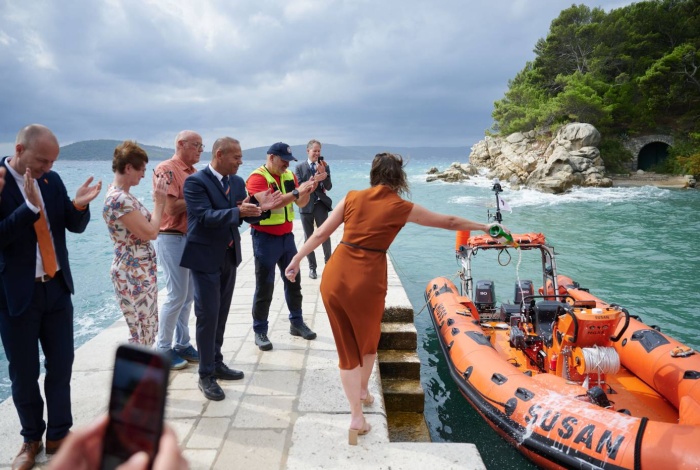 Het was een bijzondere bijeenkomst in het voormalige zomerverblijf van Tito, dat ter beschikking was gesteld door de gemeente Split. De overdracht vond plaats in aanwezigheid van tal van vertegenwoordigers uit Kroatië en Nederland. Hrvoje Simac, honorair consul van Nederland in Split, heette de genodigden welkom, gevolgd door Charlotte van Baak, de Nederlandse ambassadeur in Kroatië, en de locoburgemeester van Split. Vervolgens spraken Jacob Tas, directeur van de KNRM, Marko Rakovac, directeur van HGSS, en Edwin van der Pol, plaatsvervangend directeur bij Kustwacht Nederland, de aanwezigen toe.
