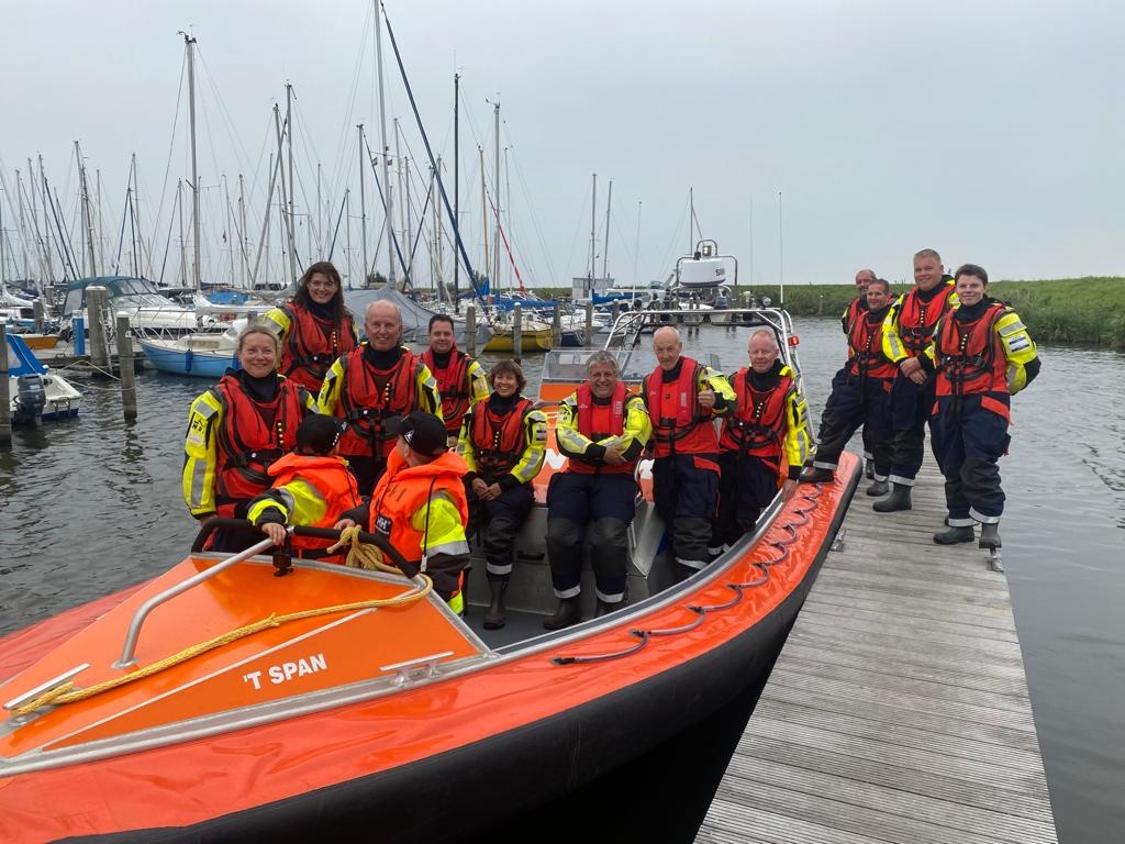 Na de koffie en de presentatie was het tijd voor onze reders om zelf te ervaren hoe het is om als redder het IJsselmeer op te gaan met Reddingboot 't Span. In de haven waren de gezichten nog gespannen in afwachting wat er ging komen, maar snel daarna verdween te ernstige blik en maakte deze plaats voor een brede glimlach.
