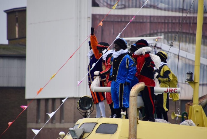 Sinterklaas en zijn Pieten zijn zaterdagmiddag veilig aangekomen in Breskens. Reddingboot Zeemanshoop moest nog wel in actie komen om een paar dwarse Pieten op een visboot te helpen.
