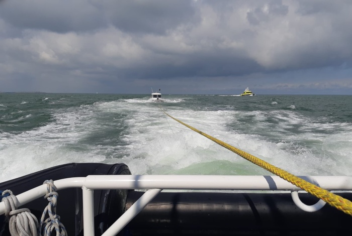 Kort na alarm vaart de reddingboot uit en zet koers richting de onfortuinlijke vis boot.
