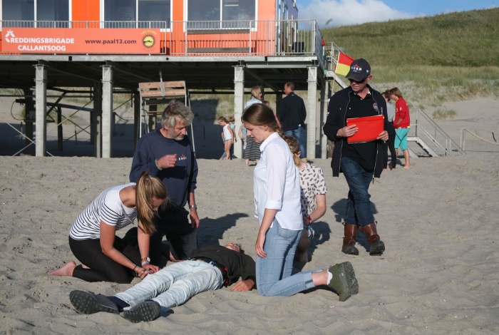 Een vinger die hevig bloedt, een kind die gebeten is door de bastaardsatijnrups, een verwarde mevrouw met een hoofdwond, een kitesurfer met een probleem aan zijn enkel en een bewusteloze jongen op het strand. Enkele scenario’s die werden nagespeeld tijdens de gezamenlijke EHBO oefening van de KNRM Callantsoog en Reddingsbrigade Callantsoog en Petten, waarbij het doel was om eerst een diagnose te stellen en daarna de correcte eerste hulp toe te passen. De vaardigheden van alle vrijwilligers werden getoetst en bijgespijkerd zo vlak voor de zomervakantie. Ruim 30 deelnemers, 5 lotus slachtoffers, 7 vrijwillige slachtoffers en 12 toezichthouders deden mee aan de oefening.