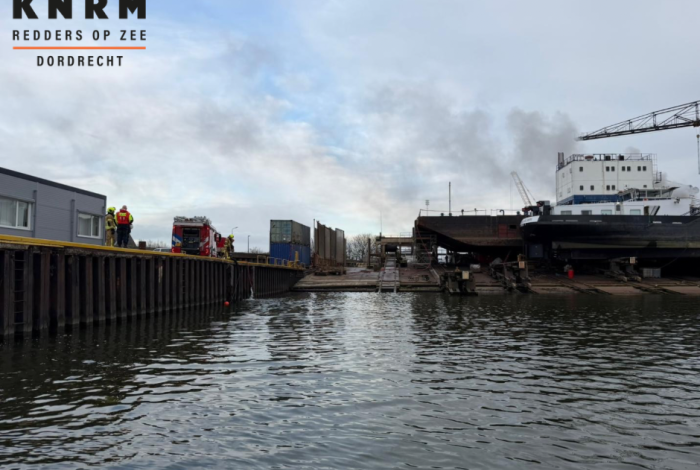 Nadat we de reddingboot weer gereed hadden gemaakt voor een volgende inzet ging de pager opnieuw. Nu voor een scheepsbrand op een scheepswerf in Hardinxveld-Giessendam. Op een ponton was brand uitgebroken in de lading hout. Het schip lag op de helling waardoor de brandweer het schip over land kon betreden. Ook hier was onze inzet bij aankomst niet meer nodig en zijn we teruggekeerd naar het station.