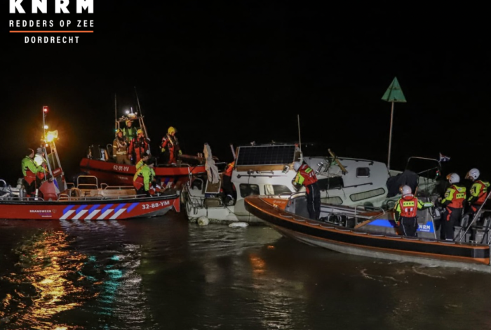 Niet veel later sloten ook de brandweerboot Dordrecht en RWS 73 aan. In overleg met Rijkswaterstaat hebben we het plezierjacht losgetrokken en overgebracht naar de haven van Bergambacht.