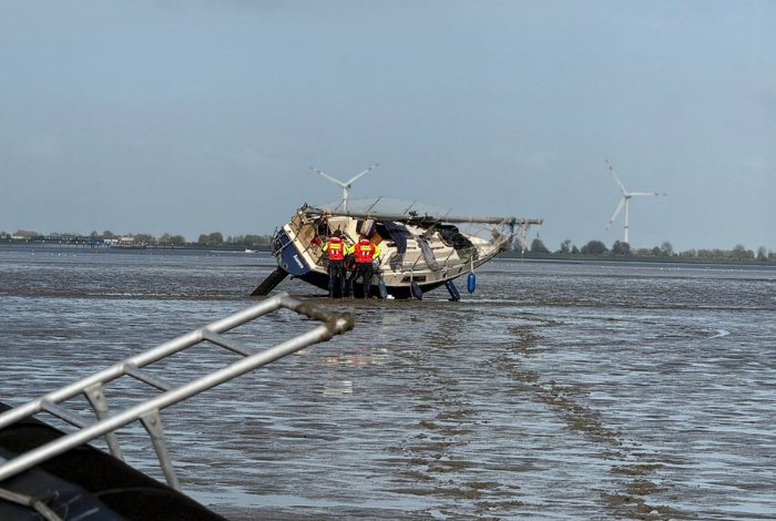Donderdagmiddag 16 april werd KNRM Eemshaven gealarmeerd voor een zeiljacht dat was drooggevallen op een zandplaat bij Delfzijl. De melding kwam via de politie en werd kort daarna bevestigd door de havendienst.