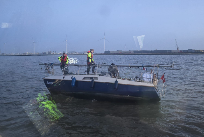 Ter plaatse bleek dat de opvarende, samen met zijn twee honden, vanuit Emden naar Delfzijl was gevaren. Het was zijn eerste tocht op open zee. Door gebrek aan kennis van getijden liep het jacht vast op een zandplaat.