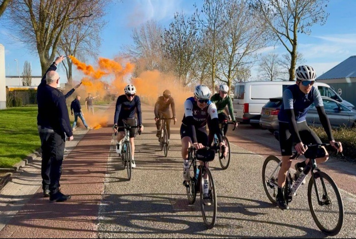 Vrijdagmiddag 20 maart kwamen zij weer aan bij ons in Elburg — een prachtig moment na 360 kilometer fietsen! 👏