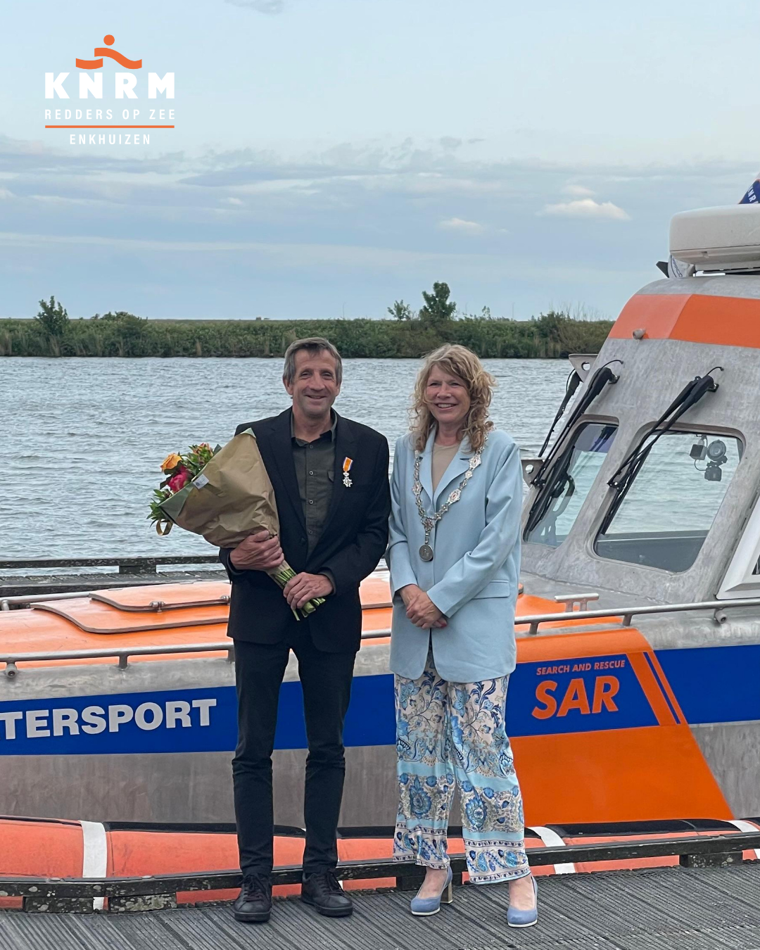Woensdagavond 4 juni mocht Bernt uit handen van burgemeester Jeltje Hoekstra-Sikkema een koninklijke onderscheiding in ontvangst nemen. Bernt is benoemd tot Lid in de Orde van Oranje-Nassau – een prachtige en welverdiende erkenning voor zijn jarenlange inzet als vrijwilliger bij KNRM Enkhuizen.