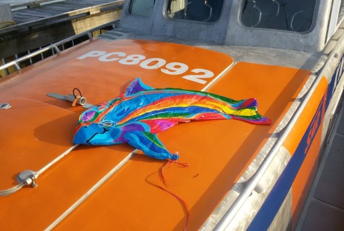 Niet veel later werd het “slachtoffer” aangetroffen in een visfuik langs de dijk. Het betrof een heliumballon in de vorm van een Dolfijn. Na contact met de melder werd duidelijk dat dat het juiste object betrof.