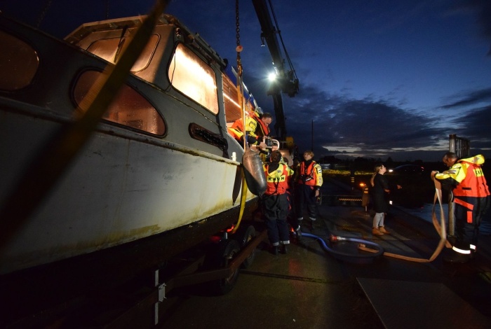 Ter plaatse is een pomp over gezet en is de boot langszij de reddingboot genomen en naar de loswal gesleept, alwaar de boot door een kraan uit het water is gehaald.