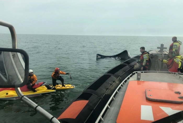 De bemanning van de KNRM reddingboot Jeanine Parqui heeft met medewerking van de waterscooter bemanning het kite-zeil geborgen en richting strand gebracht. Het kite-zeil heeft het laatste stukje overbrugt met de waterscooter. Even na 19.30 uur lag de reddingboot Jeanine Parqui weer gemeerd in de Berghaven.