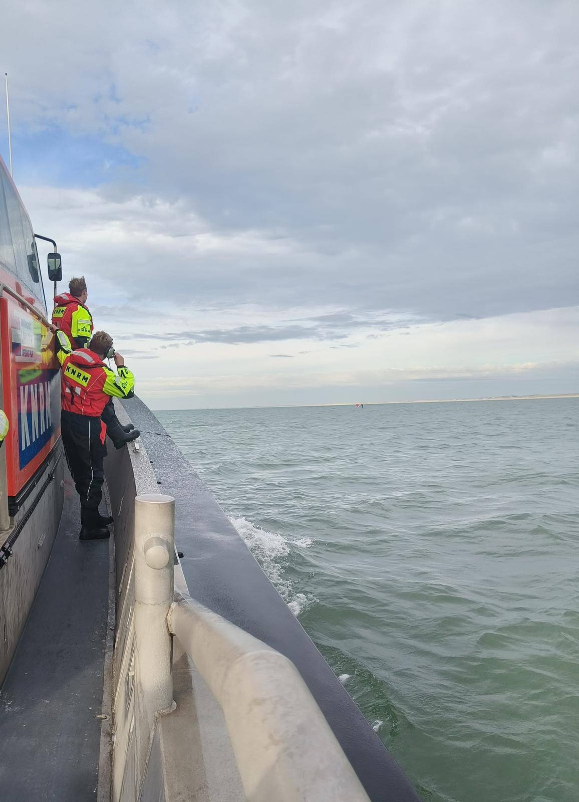 Vrijwel gelijktijdig werd door een loodstender een kitesurfzeil aangetroffen voor de kust. Op basis van deze meldingen zijn wij direct gestart met een zoekactie op zee. Tegelijkertijd werd de aanwezige scheepvaart verzocht uit te kijken.