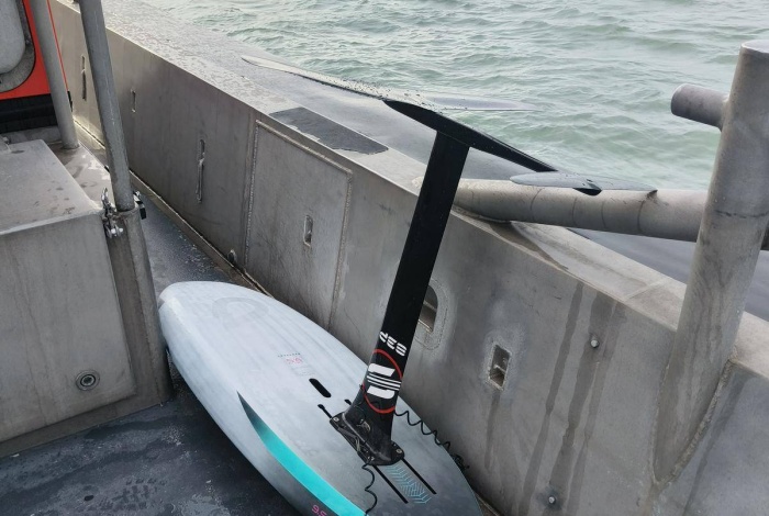 Wij hebben hem samen met zijn plank en wing veilig afgezet bij de noordpier, waar twee bemanningsleden hem hebben begeleid naar zijn auto.