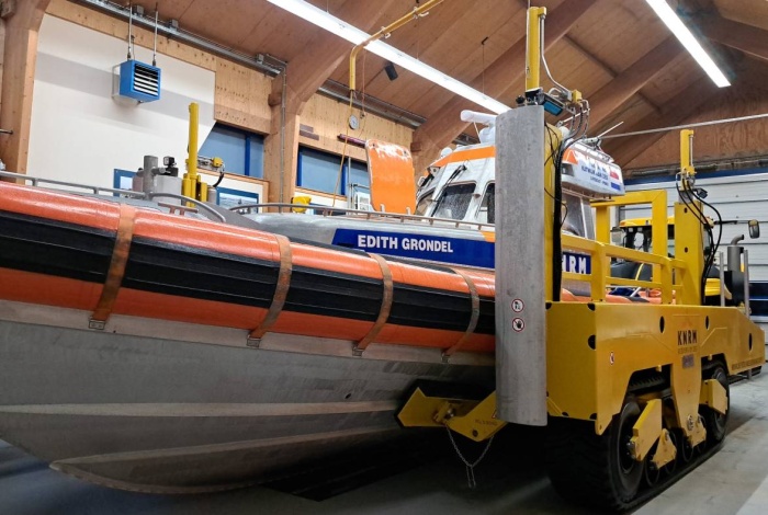 De oude bootwagen is vorige week na ruim 25 jaar afgekoppeld van de tractor, waarna de nieuwe bootwagen bevestigd is. De bootwagen is een belangrijk onderdeel van het materiaal, omdat hierin de reddingboot ligt en gelanceerd wordt.