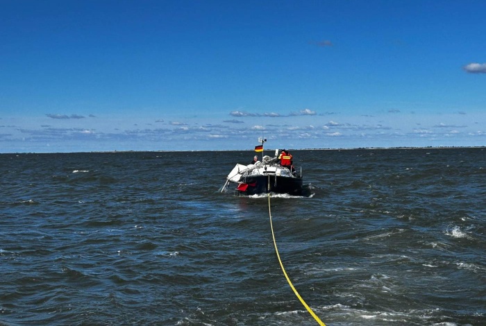 De bemanning van de Trudy Bakhuis besloot twee man over te zetten op het onfortuinlijke schip. Zij hebben eerst de fok uit de weg gehaald. De mast met zeil lag ca. 1 meter onder water maar mooi langszij. Zo lukte het om deze met een extra lijn en wat handjes vanaf de reddingboot uit het water te halen. Uiteindelijk kon de Trudy Bakhuis het jacht op sleep nemen. Het schip is ten slotte afgemeerd in Lelystad Haven, waar zij uit het water gehaald wordt.