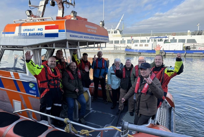 De ochtend werd afgesloten met een tochtje op de reddingboot Trudy Bakhuis naar de Markerwadden. De donateurs en hun partner of familie genoten zichtbaar van hun rondje op het Markermeer. Bij een stralende zon meerden zij de boot af en zo besloten zij hun bezoek aan Lelystad.