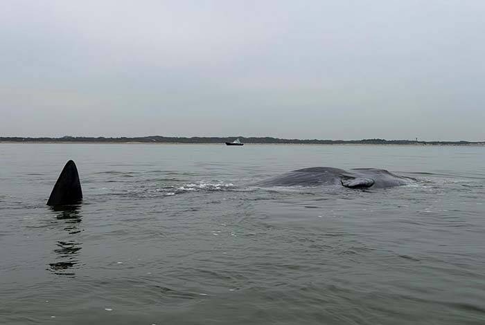 Dode potvis aangetroffen bij Verklikkerplaat, KNRM Neeltje Jans ter plaatse
