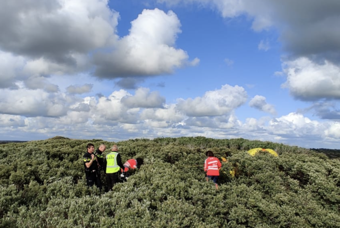 Vrijdagavond omstreeks 18:30u. ontvingen diverse hulpdiensten waaronder het kusthulpverleningsvoertuig (KHV) van KNRM station Noordwijk een melding van een ongeval met een paraglider. De hulpdiensten troffen iets ten noorden van Langevelderslag in Noordwijk de neergestorte paraglider (boven op het duin) aan. Gezien de aard van het ongeval en de moeilijk bereikbare locatie van het slachtoffer werd ook een traumahelikopter (MMT) ingezet. De MMT arts heeft in samenwerking met de bemanning van het kusthulpverleningsvoertuig de eerste medische handelingen uitgevoerd waarna ook het ambulanceteam ter plaatse kwam. Eenmaal gestabiliseerd kon het slachtoffer naar het kusthulpverleningsvoertuig worden overgebracht. Een flinke klus gezien het steile duin. Het Kusthulpverleningsvoertuig heeft het slachtoffer samen met het ambulancepersoneel naar de ambulance overgebracht waarna het slachtoffer naar het ziekenhuis is vervoerd.