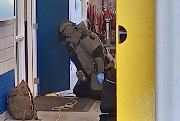 Afgelopen dinsdag mochten wij de Explosieven Opruimingsdienst Defensie (EODD) verwelkomen voor een oefening. Geen reden tot ongerustheid: er waren géén echte explosieven aanwezig. De volledige situatie was in scène gezet als onderdeel van een examen voor een medewerker van de EODD.