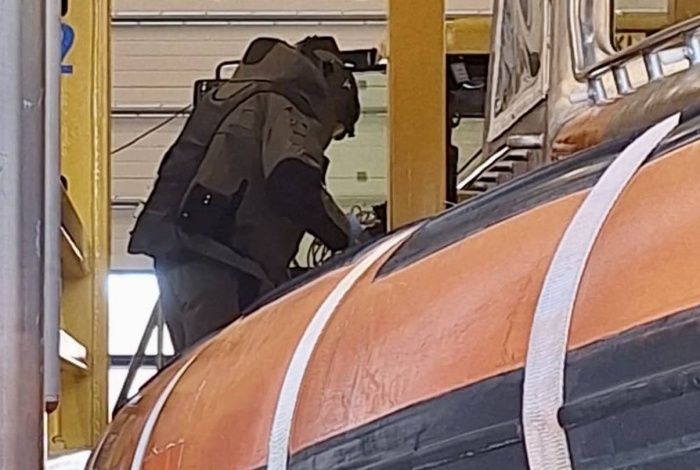 Een EODD-specialist betrad meerdere keren, gekleed in volledig bompak, het boothuis om de situatie te verkennen en het ‘explosief’ te onderzoeken. Uiteindelijk werd het object veilig onschadelijk gemaakt.