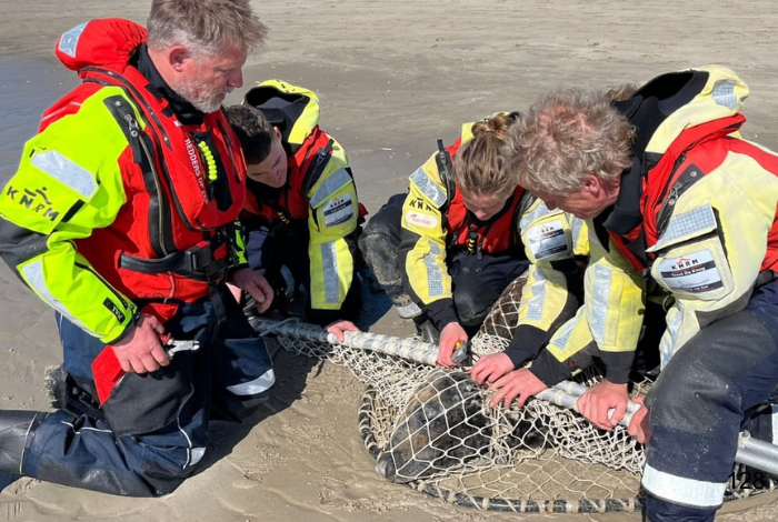 Inmiddels is ook de traumaheli geland en wordt de vrouw nagekeken en alles blijkt gelukkig, op een nat pak na, in orde te zijn. De gealarmeerde brandweer kan weer retour en het KHV neemt het echtpaar mee naar de parkeerplaats achter de dijk waar ze de auto hebben geparkeerd.