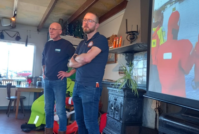 Beide heren waren enkele maanden terug benaderd door secretaris Erwin Schraa om tijdens de jaarlijkse vrijwilligersdag over hun werk te komen vertellen en iets te laten zien op het gebied van veiligheid aan boord van schepen. Na de voorstelronde in de gezellige Taveerne op de Koggewerf vertelde Rein Snoek hoe een reddingsvest moet worden gedragen en wat daarbij de gevaren en valkuilen zijn. Ook werd een zogenaamd Personal Locator Beacon (PLB) gedemonstreerd dat aan het reddingsvest wordt gedragen en in geval van nood een zogenaamd AIS-signaal uitzend waardoor alle schepen binnen een straal van zeven of acht zeemijl een melding op het scherm krijgen.
