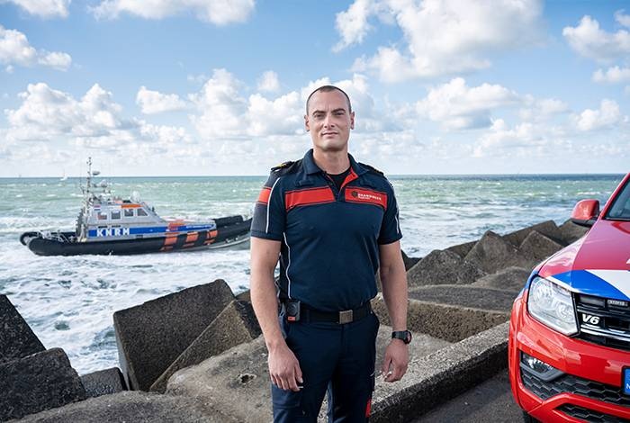 “Rond het havenhoofd en het strand werken brandweer en KNRM als één team samen om mensen in nood veilig aan wal te brengen. In deze aflevering wordt pijnlijk duidelijk hoe gevaarlijk ons werk eigenlijk is.”